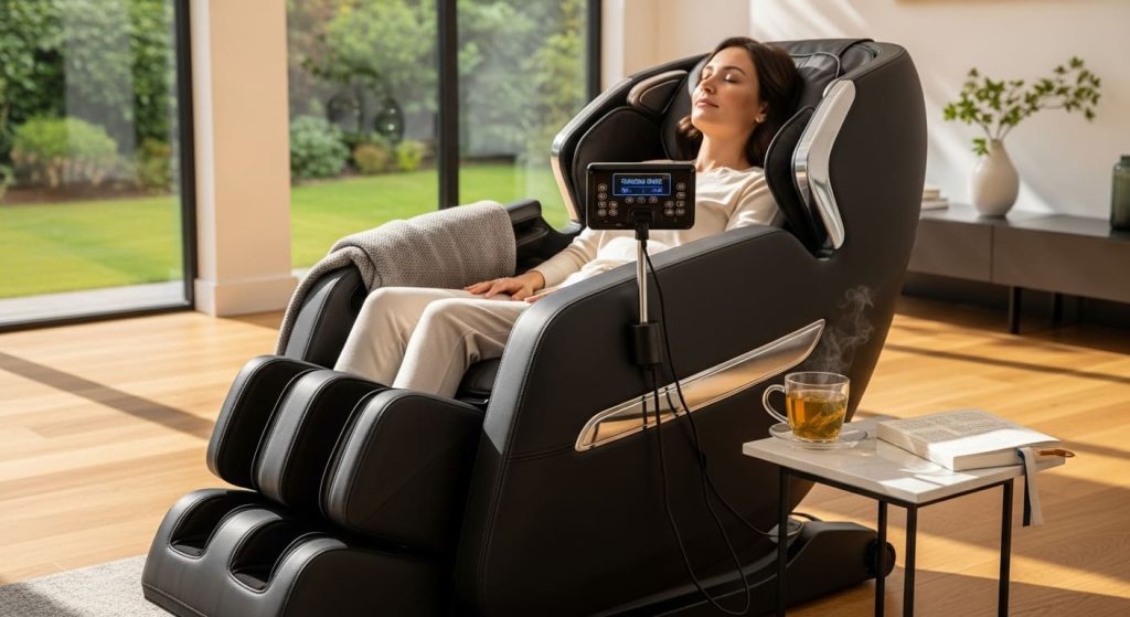 Az iRest SL-A158 masszázsfotel hatékonyan célozza meg a test fontos akupresszúrás pontjait, így ideális a délutáni vagy esti pihenéshez.