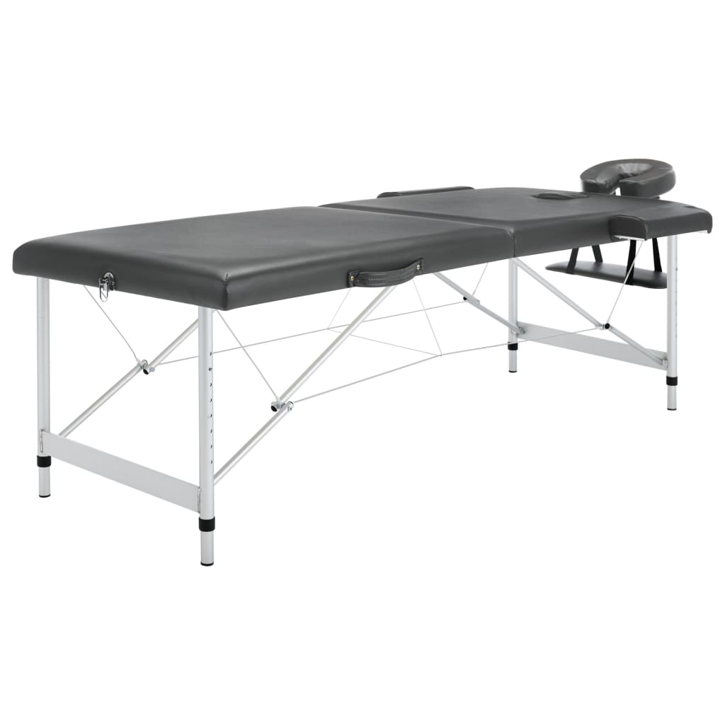 2 zónás antracit masszázsasztal alumíniumvázzal 186 x 68 cm – 110174 – Masszázsasztalok – A kétzónás, összecsukható, alumíniumvázzal rendelkező masszázsasztal masszázshoz, shiatsu-hoz és reikihez is alkalmas. A nagy sűrűségű habbal ellátott párna nagyon k