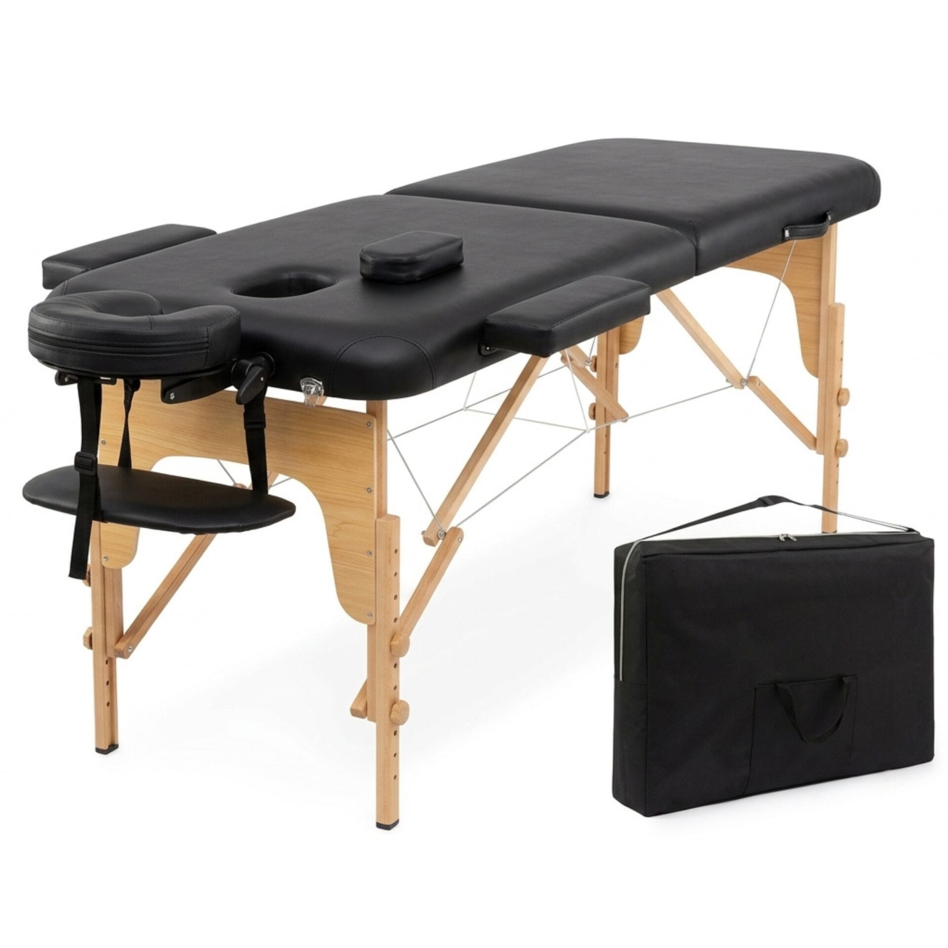 Pepita 2 zónás fa összecsukható Masszázságy tároló bőrönddel – Fekete